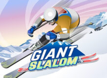 Giant Slalom winter game. Move left and right and ski right of the…